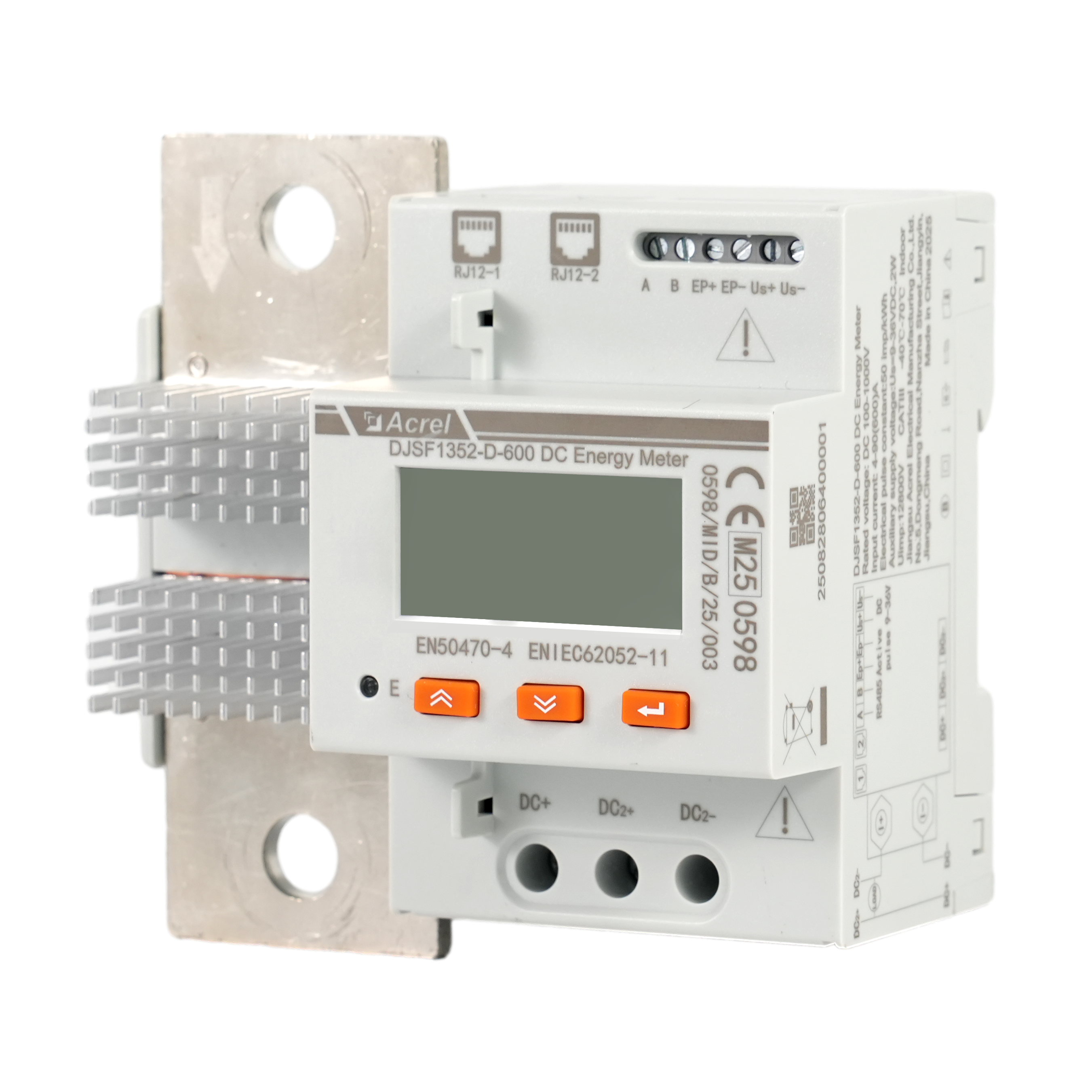 Đồng hồ đo điện DC gắn ray DJSF1352-D, được thiết kế đặc biệt cho sạc DC, có khả năng đo điện áp, dòng điện, công suất và năng lượng, cùng các thông số khác.